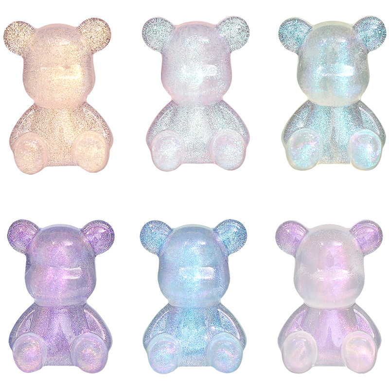 Ice transparent bear buatan tangan diy lem krim kartun halus flash Kristal Beruang lubang sepatu gesper resin Aksesori grosir