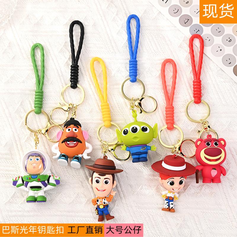 Gantungan kunci beruang stroberi baru mainan karet lembut tas pasangan liontin Kartun Gantungan Kunci tahun basguang