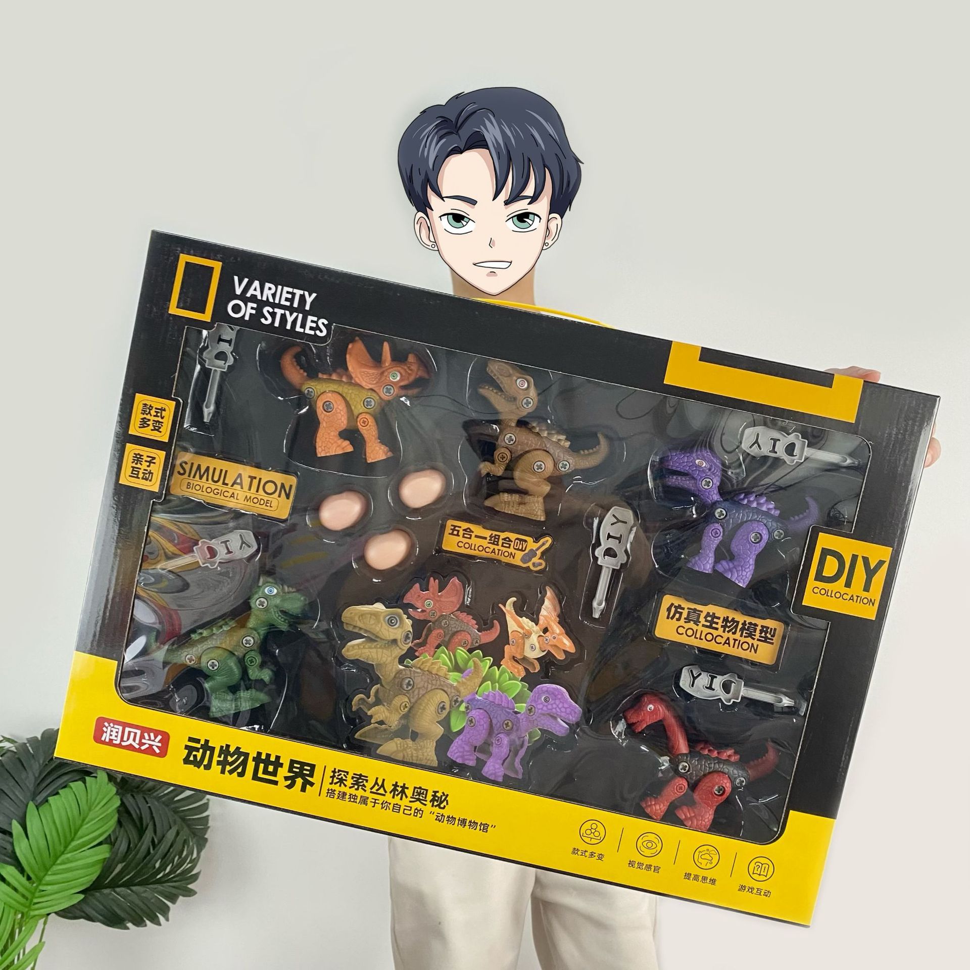 Lembaga Pelatihan mainan edukasi anak-anak dirakit sekrup dinosaurus setelan lima-in-one mesin deformasi hadiah grosir
