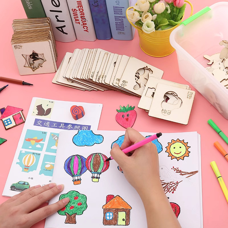 Hollow-out alat melukis anak-anak, templat lukisan grafiti bayi alat mainan pendidikan