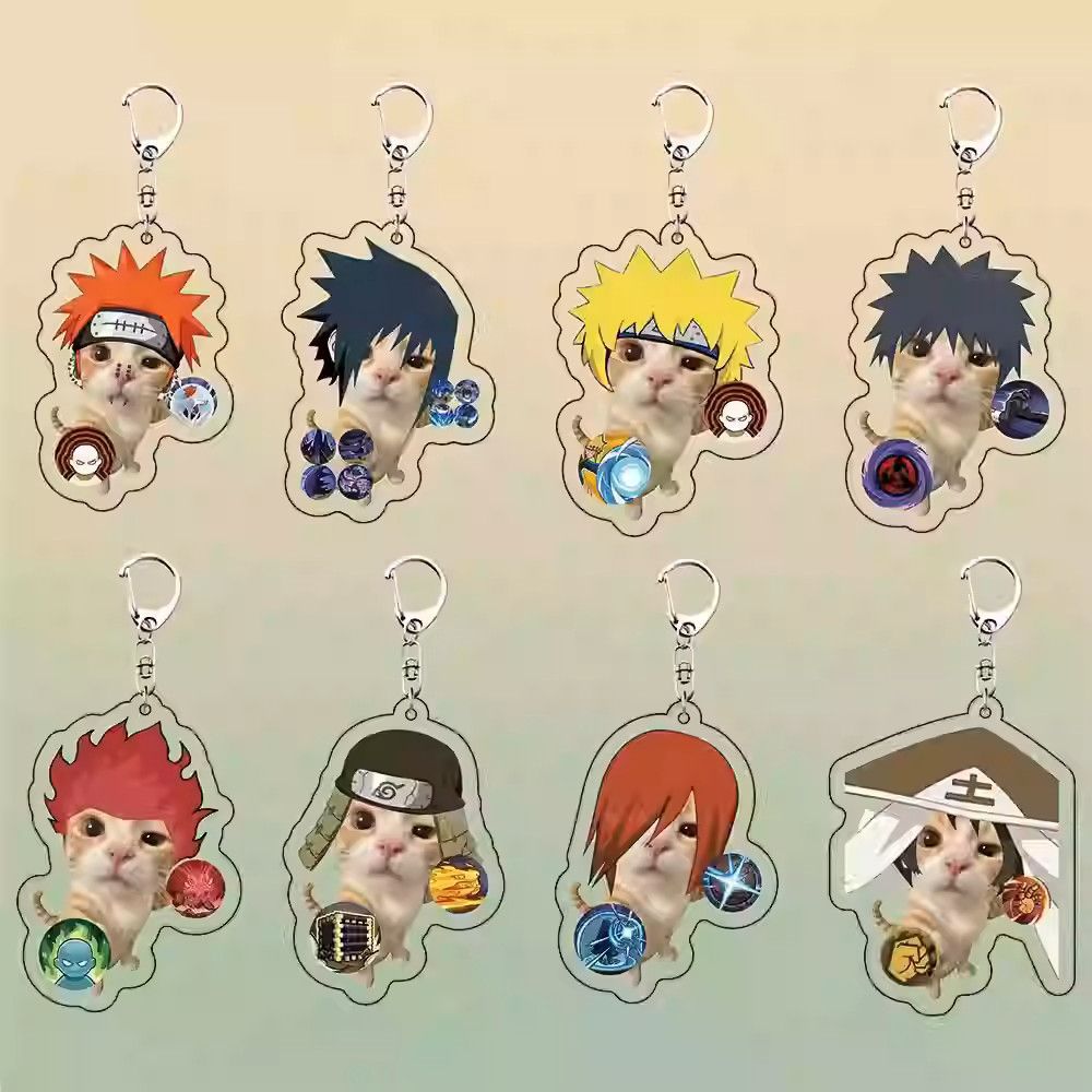 T Crossborder Naruto kepalan tangan kucing 2D akrilik gantungan kunci mobil cermin belakang ransel liontin kecil