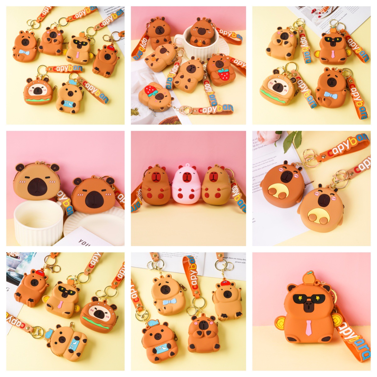 Dompet Kecil Kapibara Gantungan Kunci Dompet Uang Kecil Silikon Lucu Tas Penyimpanan Earphone Tas Sekolah Anak-anak Gantungan Hadiah Kecil