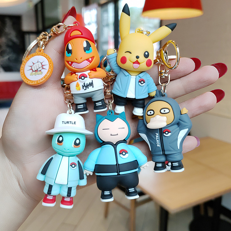 Sweter bayi ajaib kartun tiga generasi, gantungan kunci boneka PVC kura-kura Pikachu, hadiah kecil