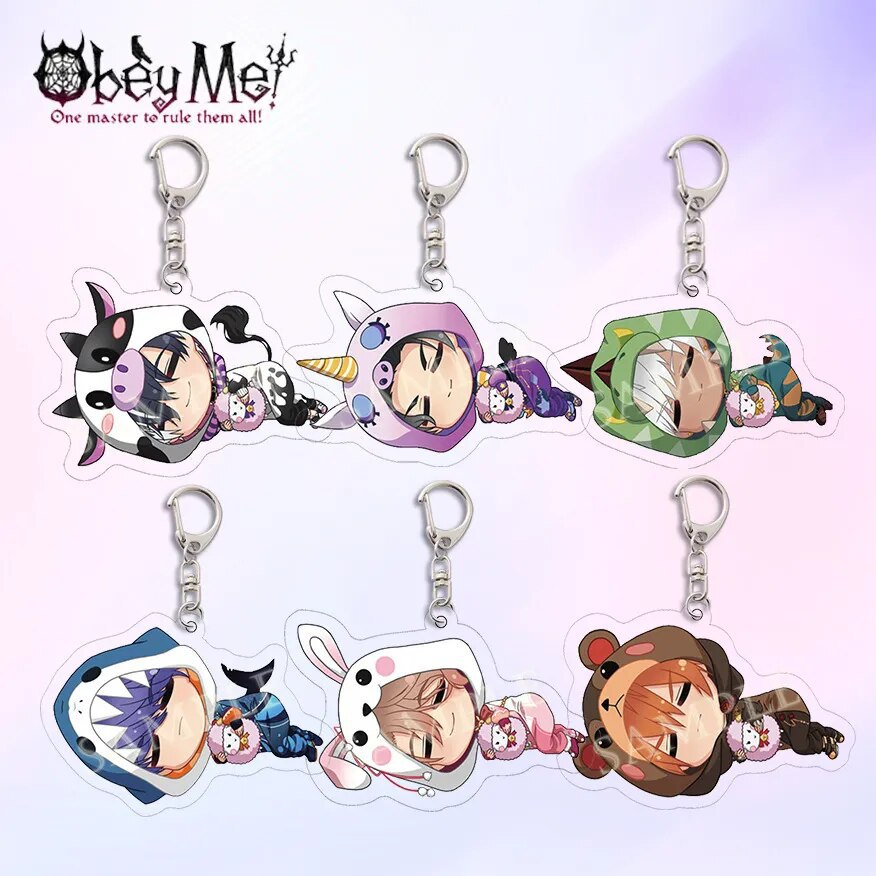 Obey me gantungan kunci anime wanita Mamon Lucie falivitan piyama seri akrilik gantungan kunci pria bisa