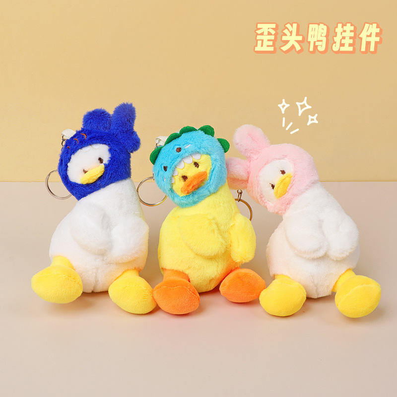 Selebriti Internet gaya sama tutup kepala bengkok kepala bebek liontin gantungan kunci boneka mobil putih boneka bebek tas liontin