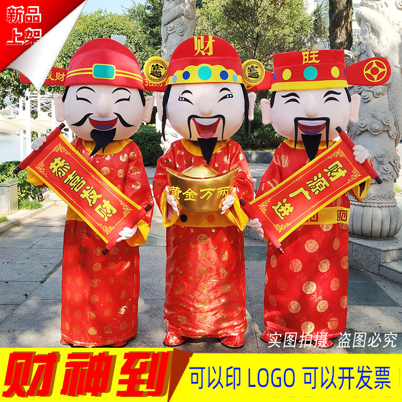 Kostum maskot kartun Dewa Kekayaan untuk acara, pertunjukan, rapat tahunan, properti jalan kaki, penutup kepala, kostum Dewa Kekayaan yang membawa keberuntungan.