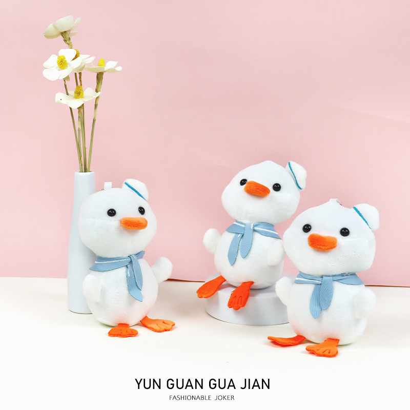 Mainan liontin bebek, gaya Korea boneka bebek mewah boneka lucu bebek putih tas sekolah liontin aksesoris topi bebek