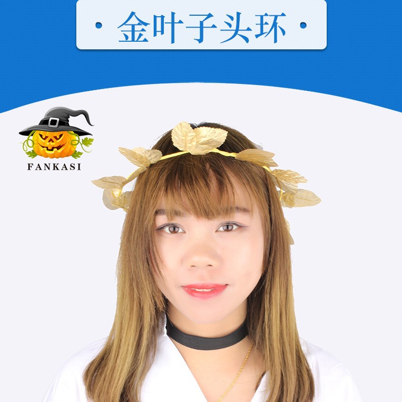 Bando cincin kepala daun emas karnaval Halloween dekorasi COSPLAY Aksesori COSPLAY