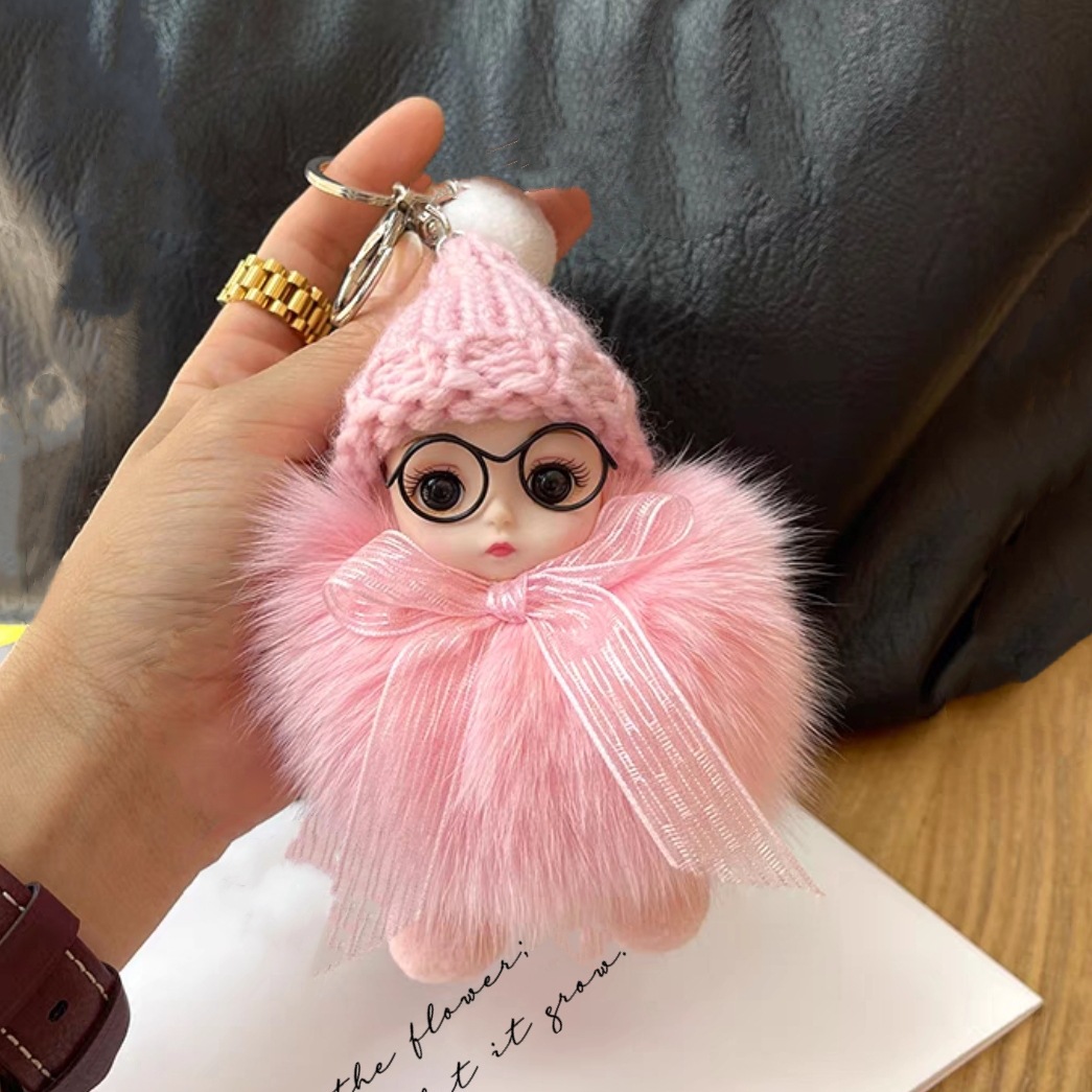 Rambut asli liontin bola bulu rubah liontin boneka mata besar liontin mewah gantungan kunci mobil liontin tas