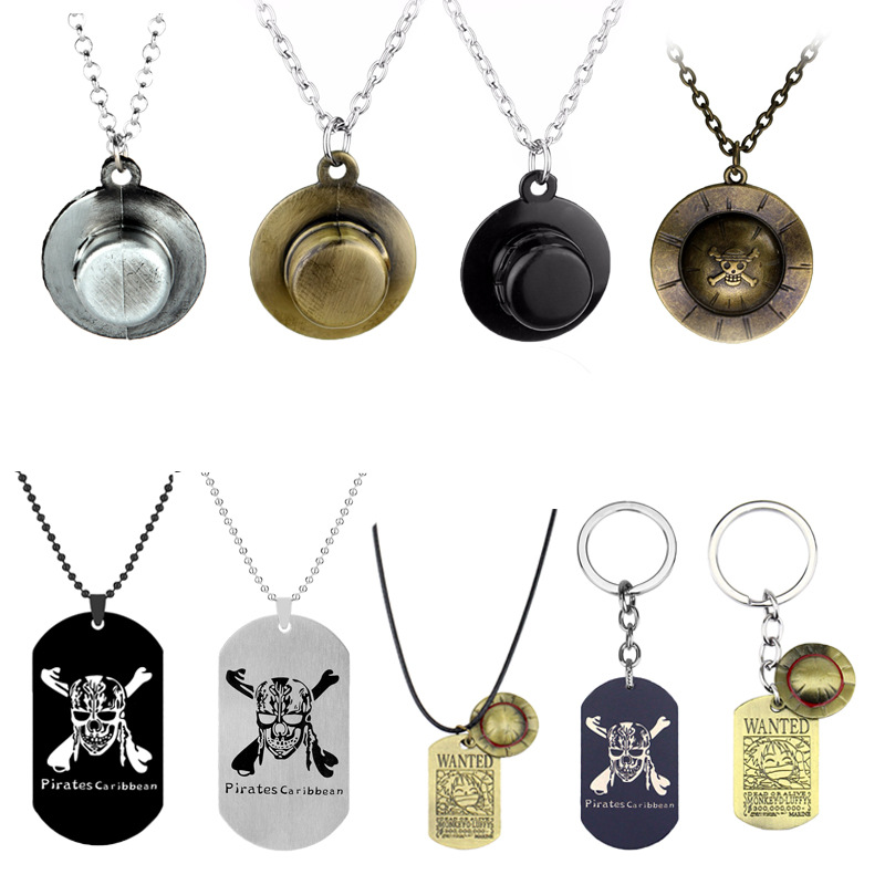 Anime perifer satu bagian Luffy topi jerami logo tengkorak gantungan kunci topi Joba kalung liontin logam campuran