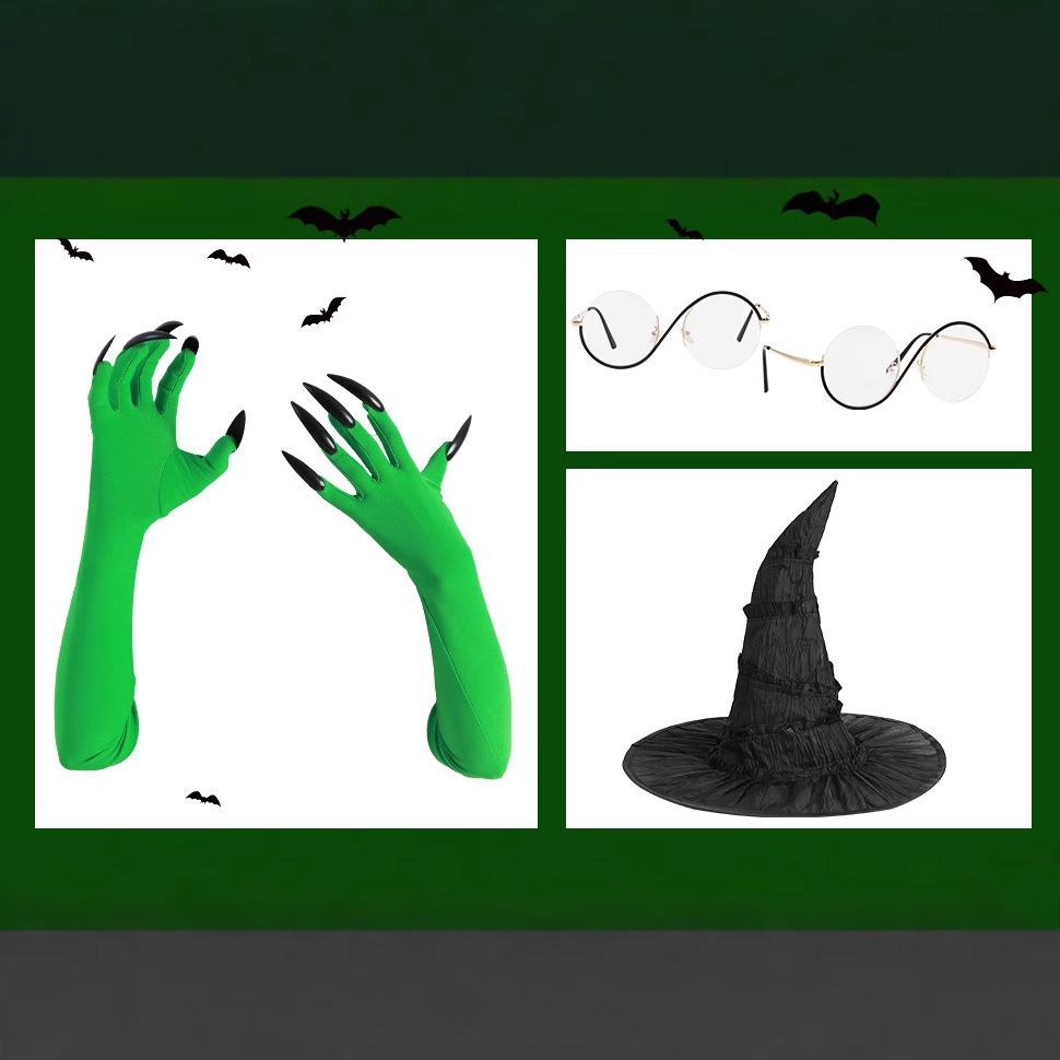Crossborder Produk Baru Penyihir Tiga Set Sarung Tangan Topi Kacamata Cosplay Kostum Pesta Kostum
