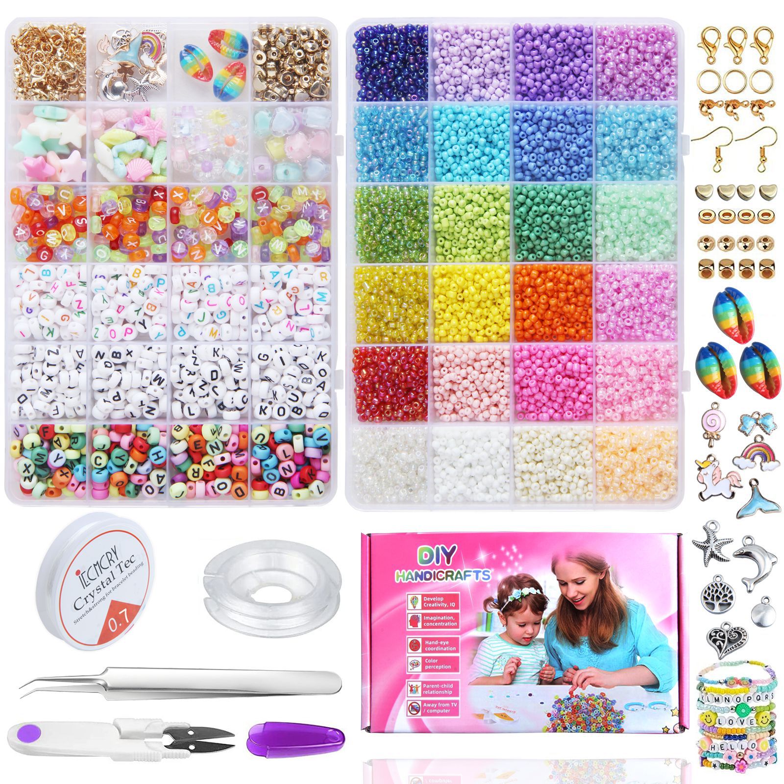 Dua setelan anak manik-manik buatan tangan diy aksesoris liontin gelang warna-warni manik-manik nasi huruf setelan buatan tangan manik-manik longgar