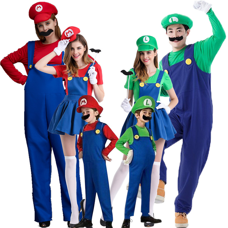 Kostum cosplay Halloween, kostum anime, permainan peran orang tua dan anak, kostum Super Mary