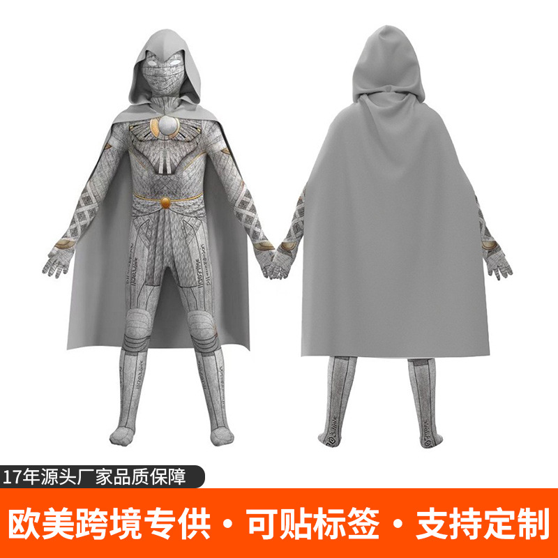 Pakaian ksatria cahaya bulan pakaian cosplay pakaian ketat cetak digital Jubah bertudung kostum Halloween anak-anak