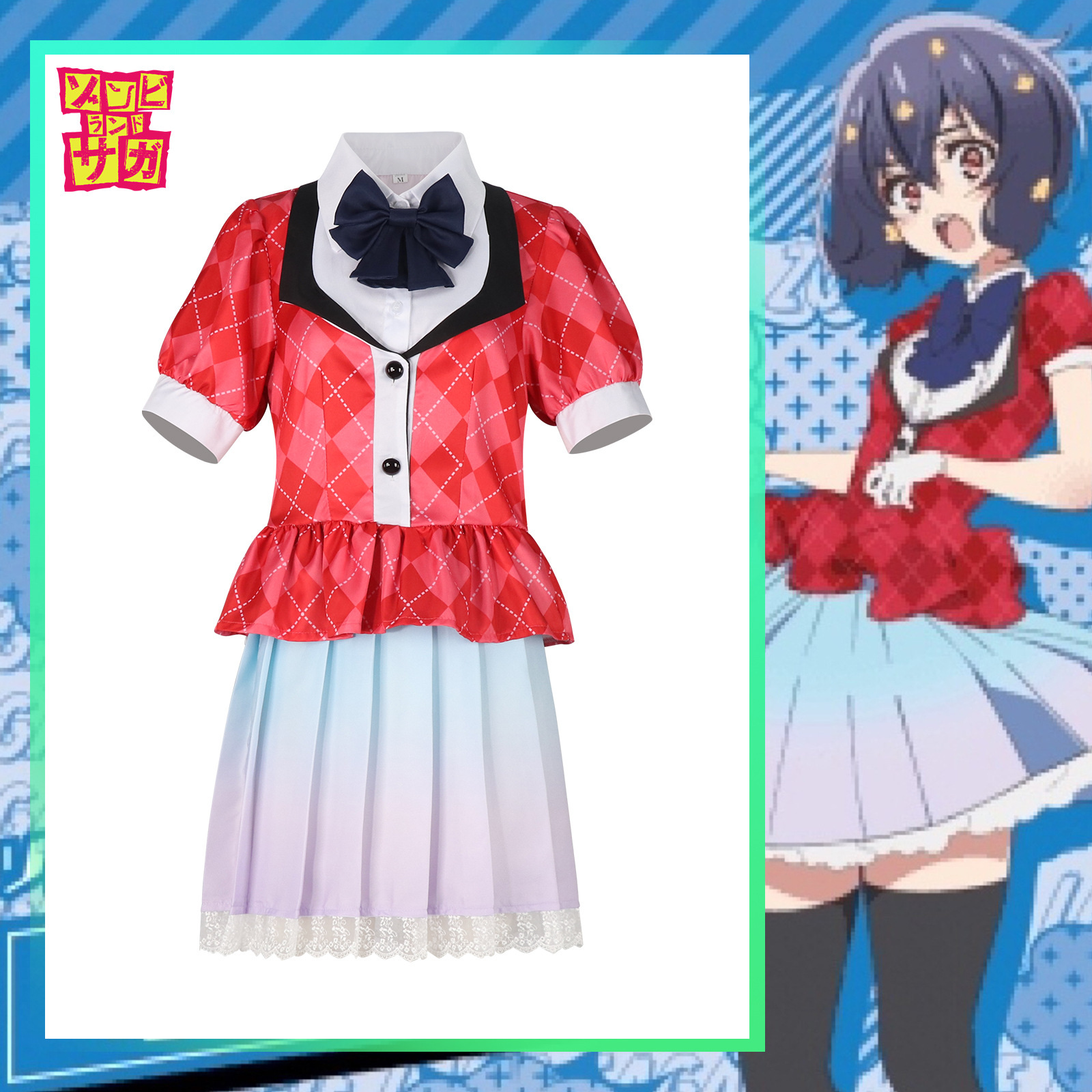 Gaya lucu lolita gaya Jepang Gaun Seragam Pelayan Cosplay Seksi Warna Hitam Kotak Merah Ukuran Besar