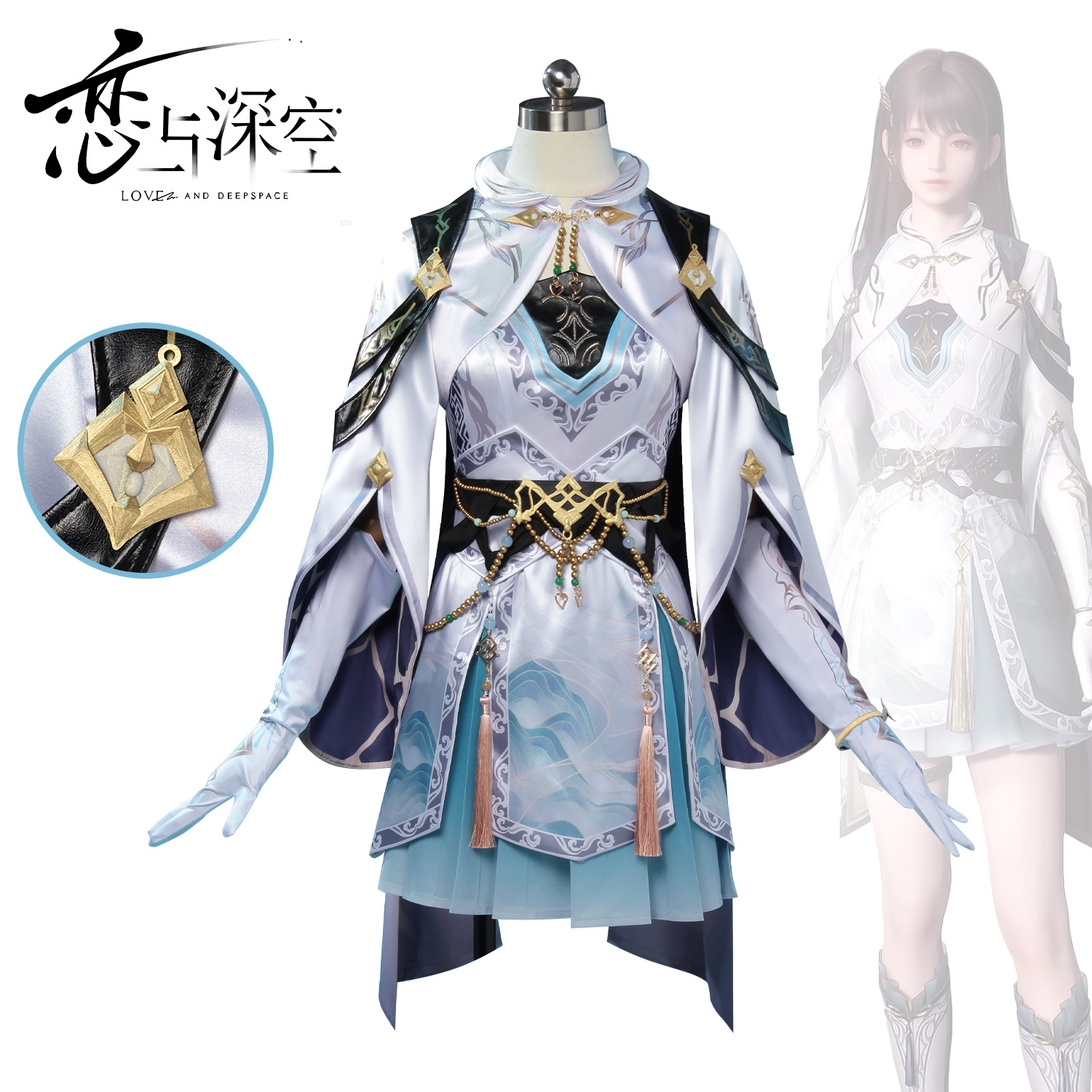 Chihiro pakaian cosplay Chiano Chihiro White Dragon Amber Sichuan set lengkap pakaian cos Xiaoqian pakaian panggung pengiriman satu potong,