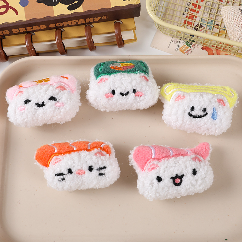 Kartun Mewah Kreatif Sushi Bola Nasi Aksesoris Boneka Kucing Kecil Bros DIY Aksesori Bros Rambut Bahan Pakaian Sepatu dan Kaus Kaki Dekorasi