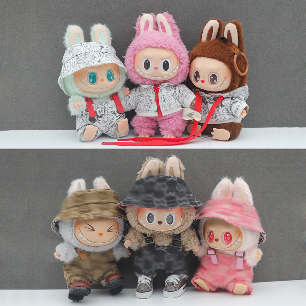 Baju Ritsleting Boneka Labu 17CM Generasi Satu Dua, Sweatshirt Bertopi, Baju Boneka Labu, Pakaian Boneka Labu, Topi Nelayan, Celana Tali