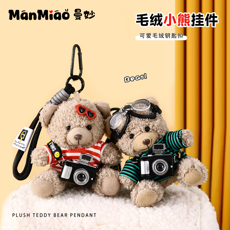 Kamera Asli Tas Sekolah Beruang Kecil Aksesori Gantungan Tas Boneka Mewah Lucu Gantungan Kunci Pasangan Hadiah Kreatif Grosir