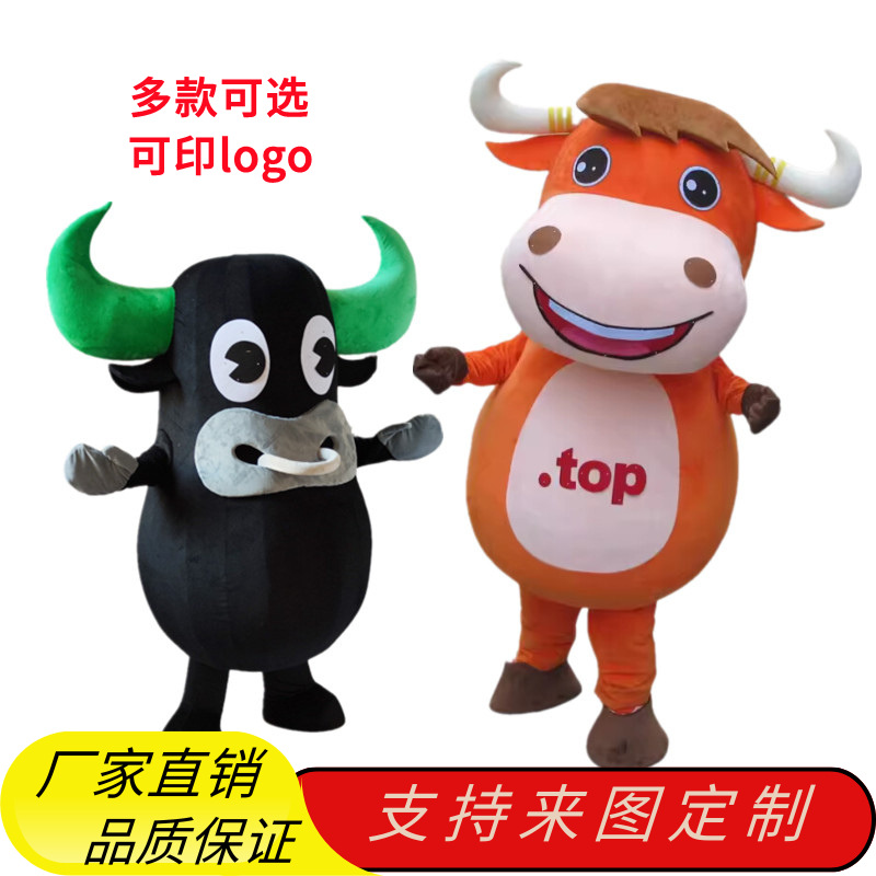 Pakaian Boneka Kartun Sapi dari Gambar Kostum Pertunjukan Berjalan Boneka KJas Mengniu Pakaian Boneka Penutup Kepala Boneka