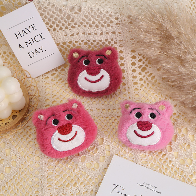 Bros beruang stroberi kartun mewah aksesoris rambut stroberi lucu aksesori diy tas boneka aksesori pakaian kaus kaki