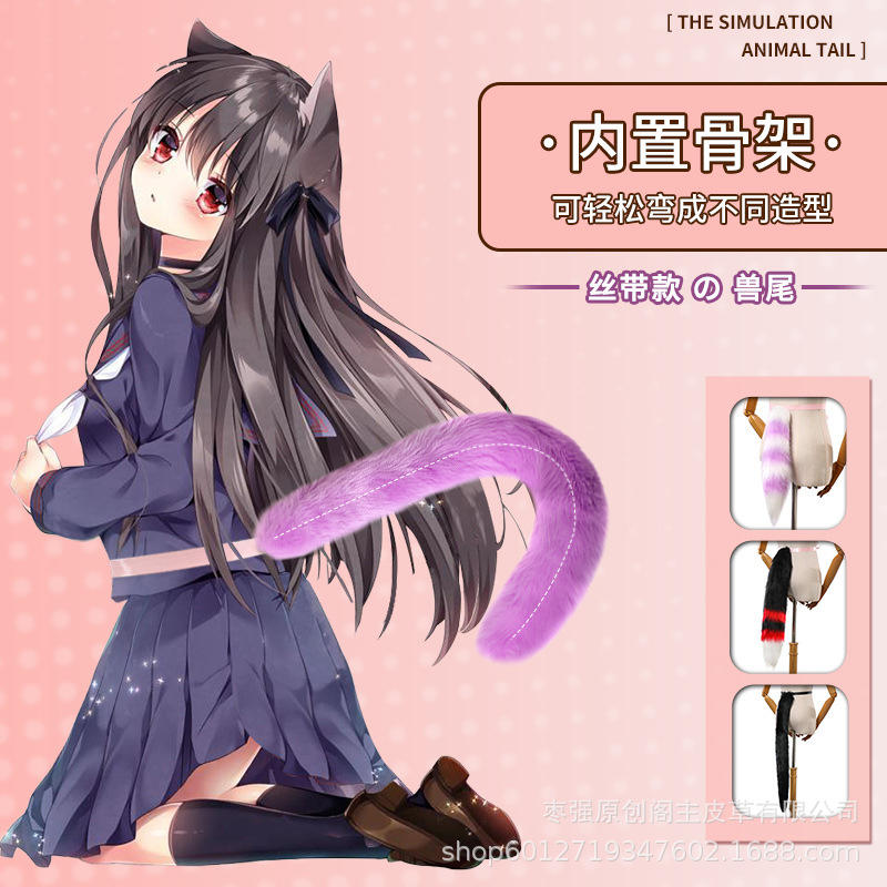 Gaun lucu dua dimensi ekor kucing buatan tangan Jepang lucu properti cosplay aksesoris pesta ekor binatang