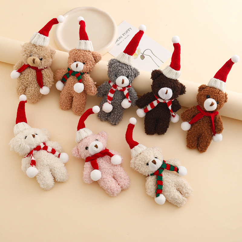 跨境新款圣诞小熊可爱玩偶娃娃毛绒钥匙扣包包挂件围巾公仔小礼物