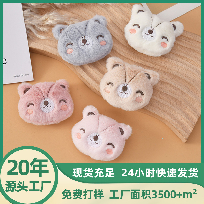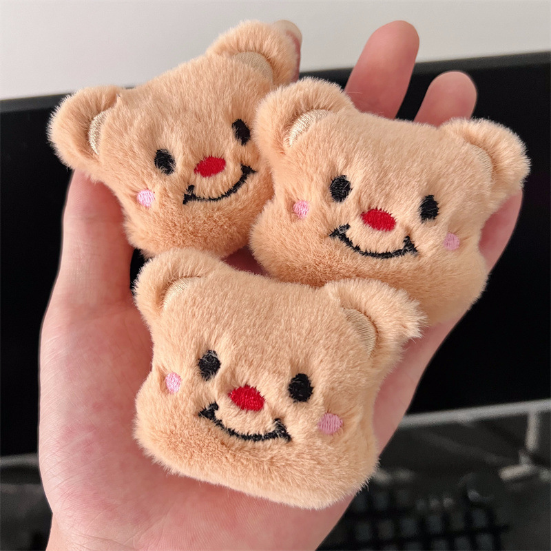 Sepatu dan kaus kaki swakriya kepala beruang beludru giok warna-warni gantungan kunci tiga dimensi boneka katun Aksesori bros mewah