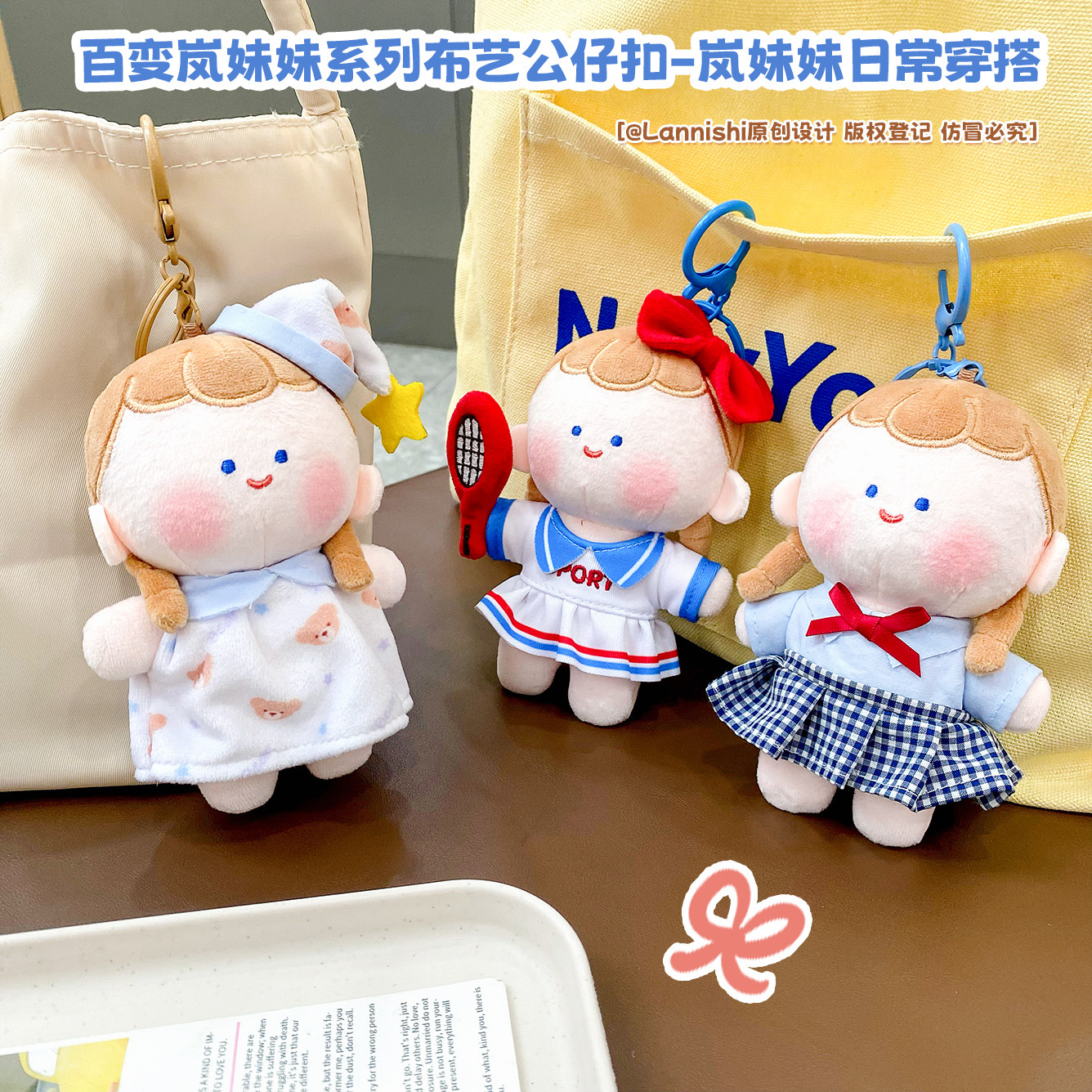 正版百变岚妹妹系列毛绒公仔挂件可爱日常穿搭玩偶钥匙扣书包挂饰