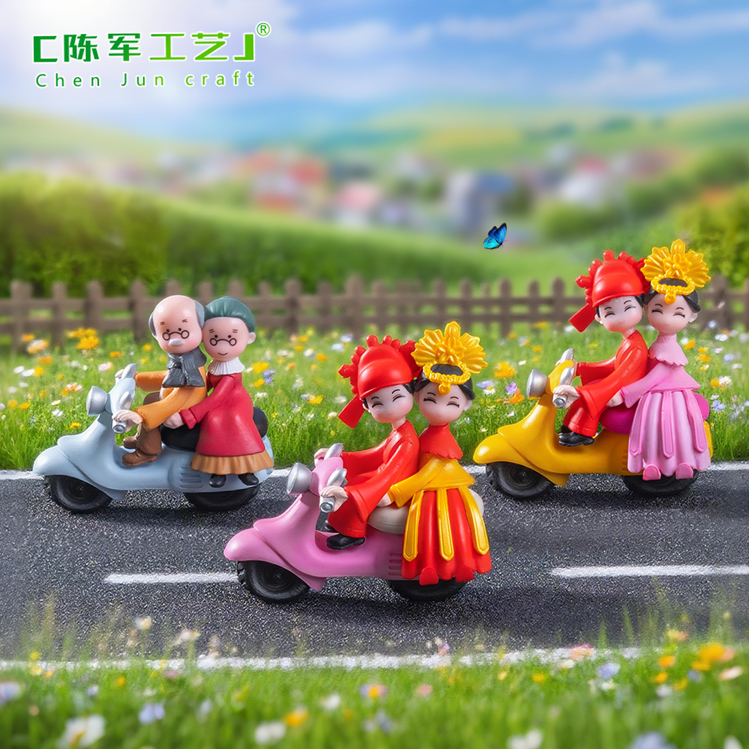 创意古装国风摩托车情侣公仔 蛋糕烘焙diy装饰品配件微景观小摆件