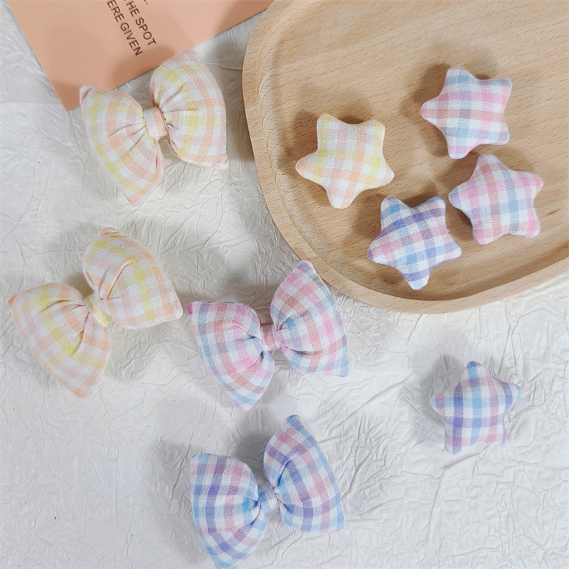 Aksesori kain buatan tangan bintang berujung lima kotak-kotak kain baru aksesori bros boneka pin pakaian berisi katun