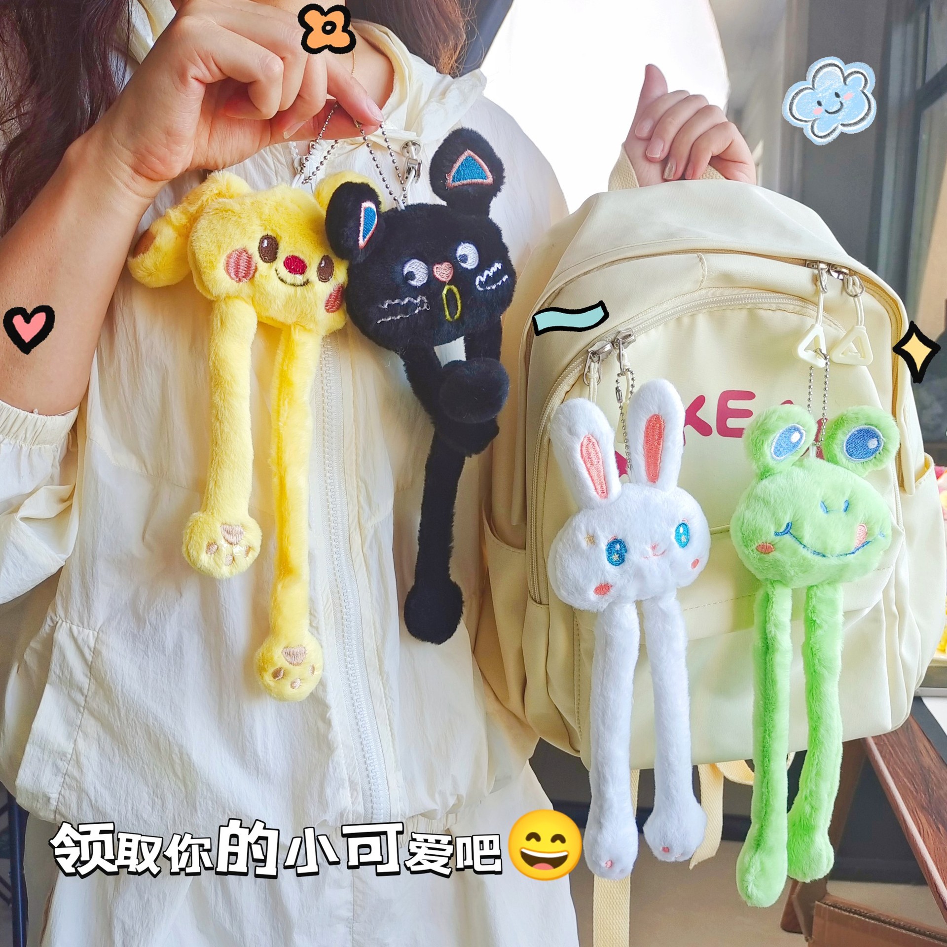 网红毛绒动物头抽拉公仔挂件拽拽耳朵解压卡通趣味玩偶学生送礼物
