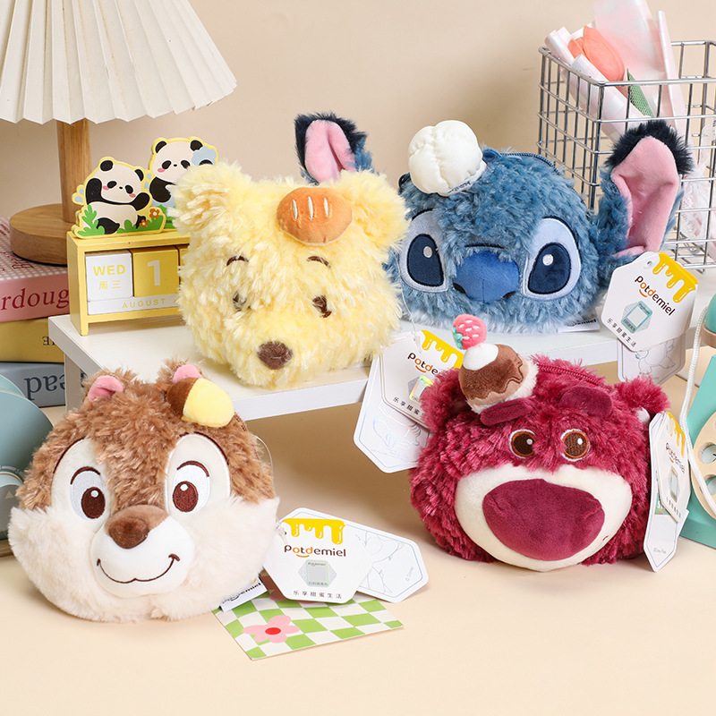 迪士尼正版史迪奇草莓熊维尼熊奇奇崽崽系列毛玩偶斜挎包公仔卡包