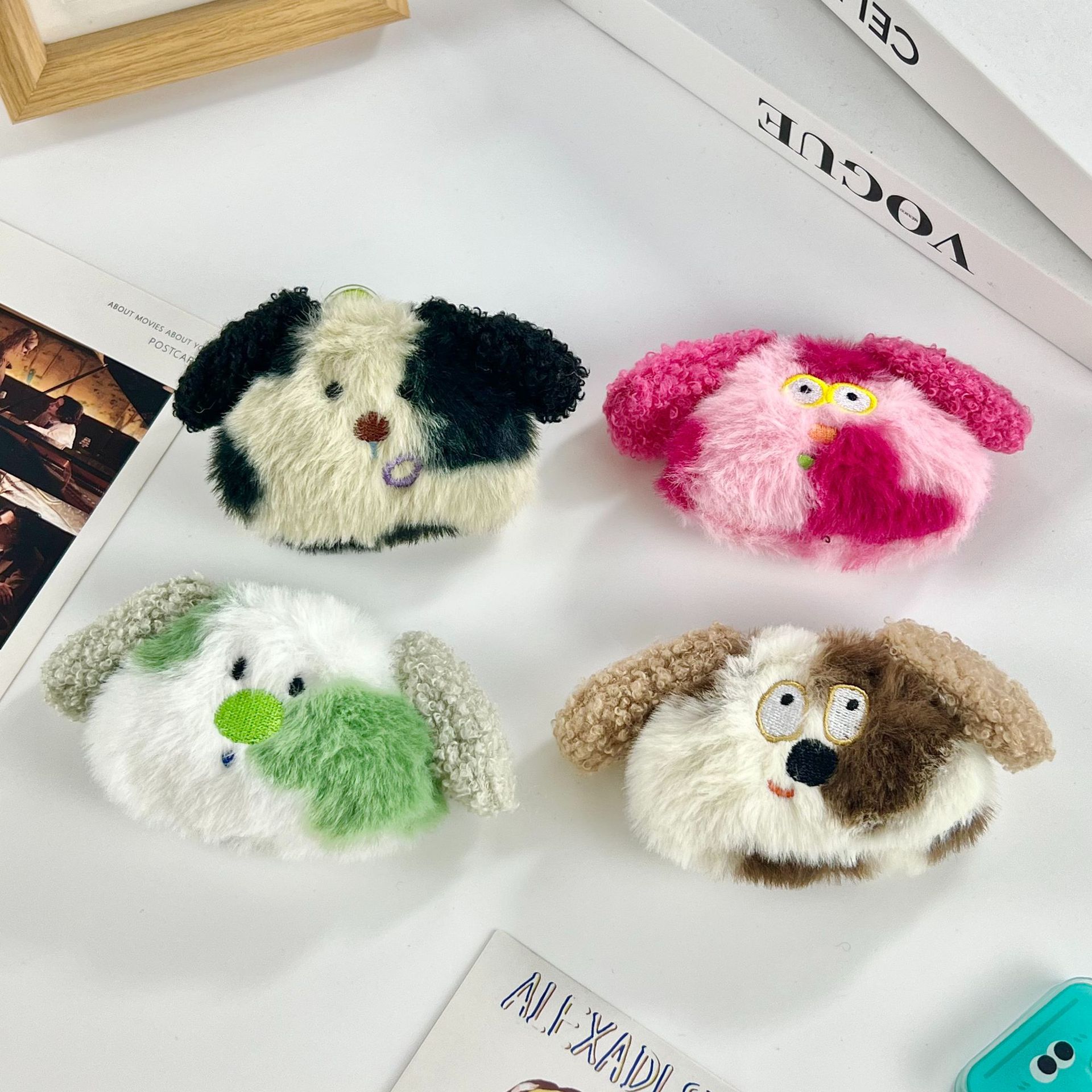 Bros Anak Anjing Berbulu Warna Kontras Bros Boneka Anjing Lucu Kartun Tas Pakaian Aksesoris Beludru