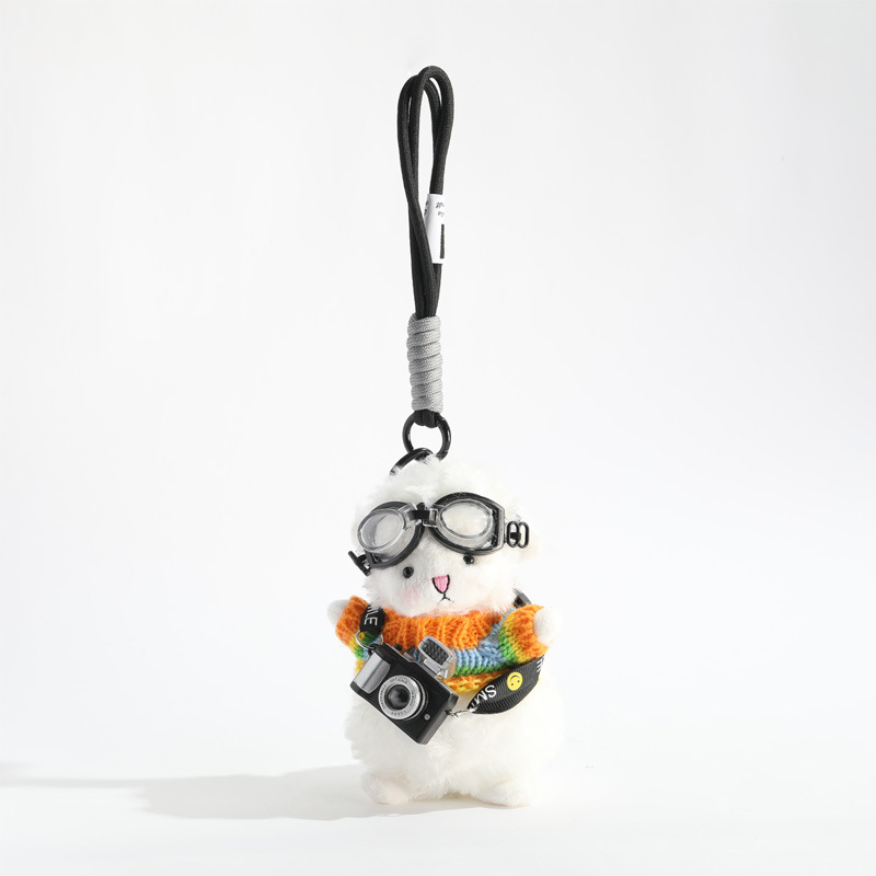 Sweater Kamera Asli Aksesori Liontin Tas Liontin Wol Domba Putih Gantungan Kunci Mobil Indah Mainan Pasangan Boneka Lucu