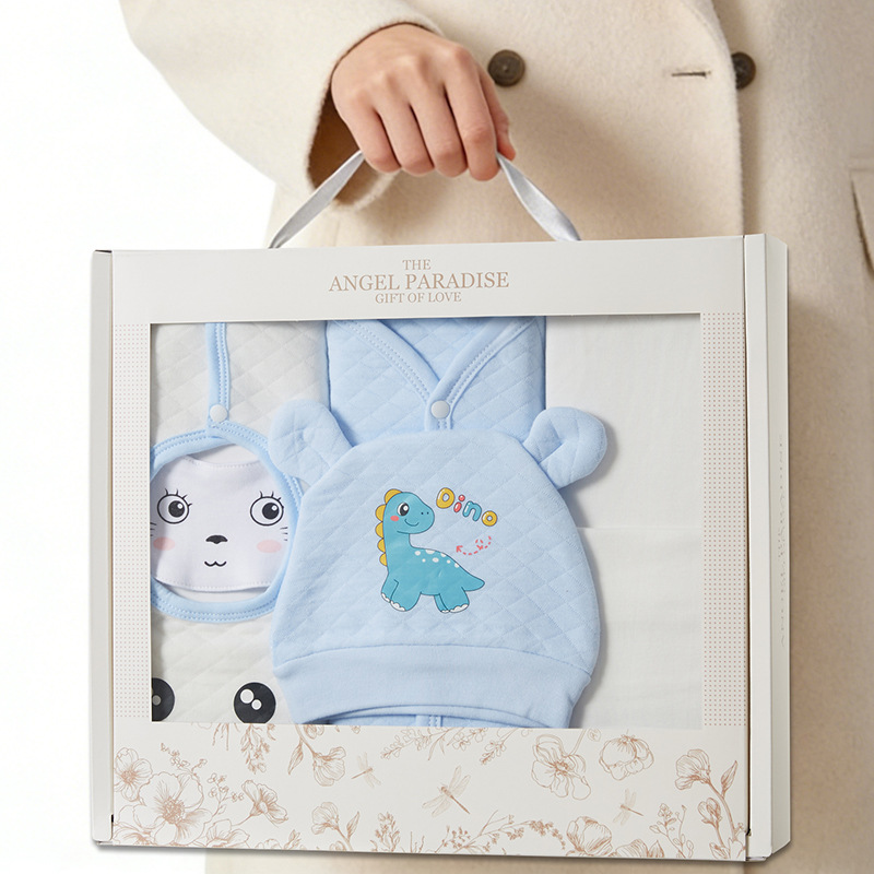 Baju bayi Tahun Naga, setelan baju bayi Musim Semi dan musim gugur, musim panas, bulan penuh, anak laki-laki dan perempuan baru lahir, kotak hadiah katun murni