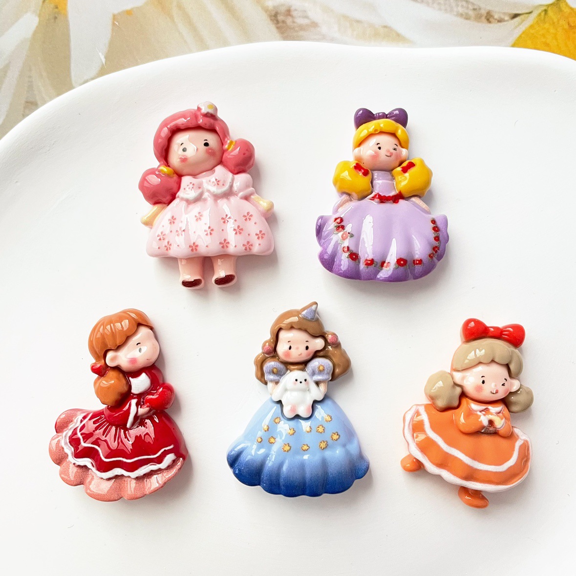 Gaun putri gadis boneka rambut panjang lem krim resin aksesori diy tambalan kartun perhiasan mini buatan tangan jepit rambut