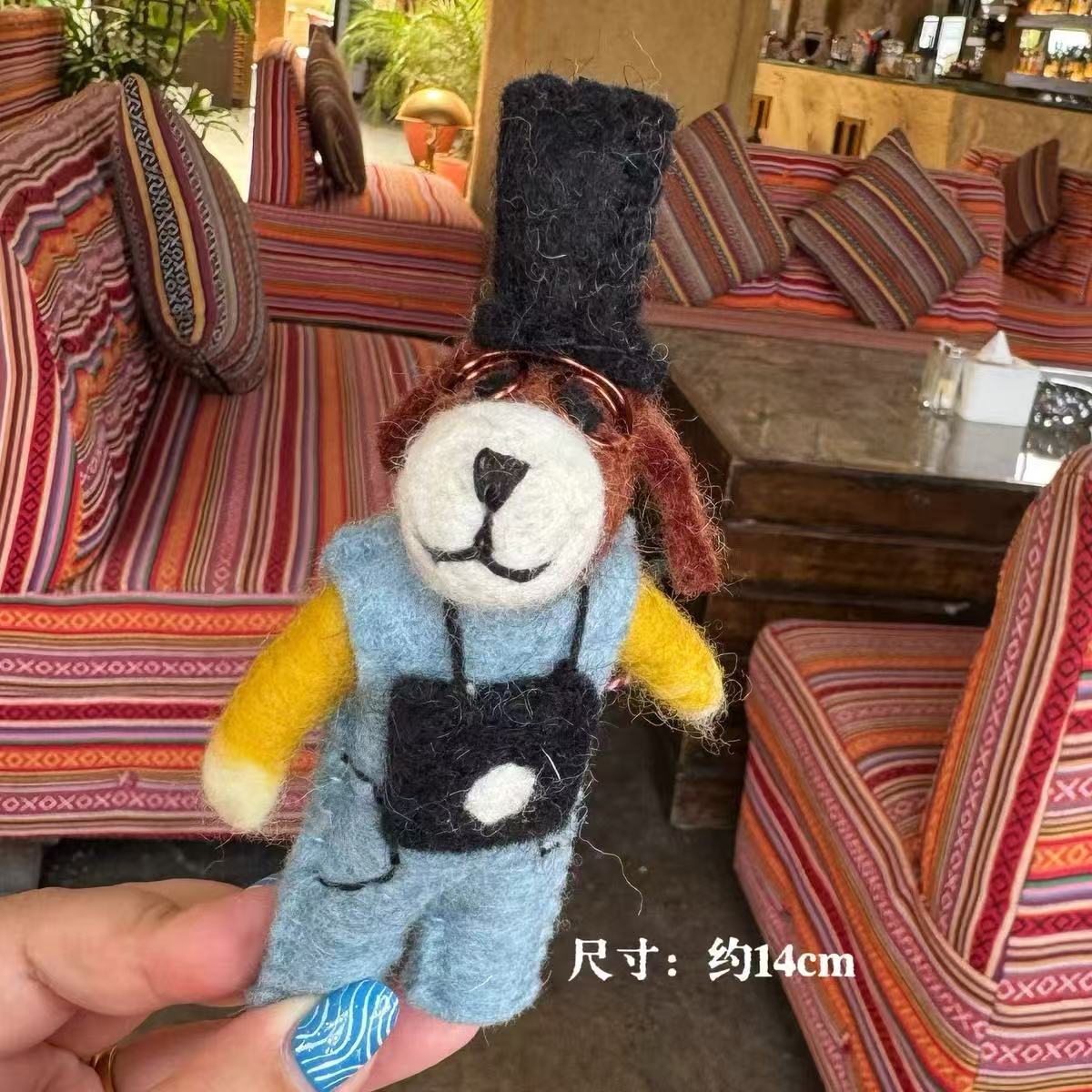 Kacamata Topi Bowler Anak Anjing Nepal Wol Gantungan Gantungan Gantungan Kunci Hadiah Boneka