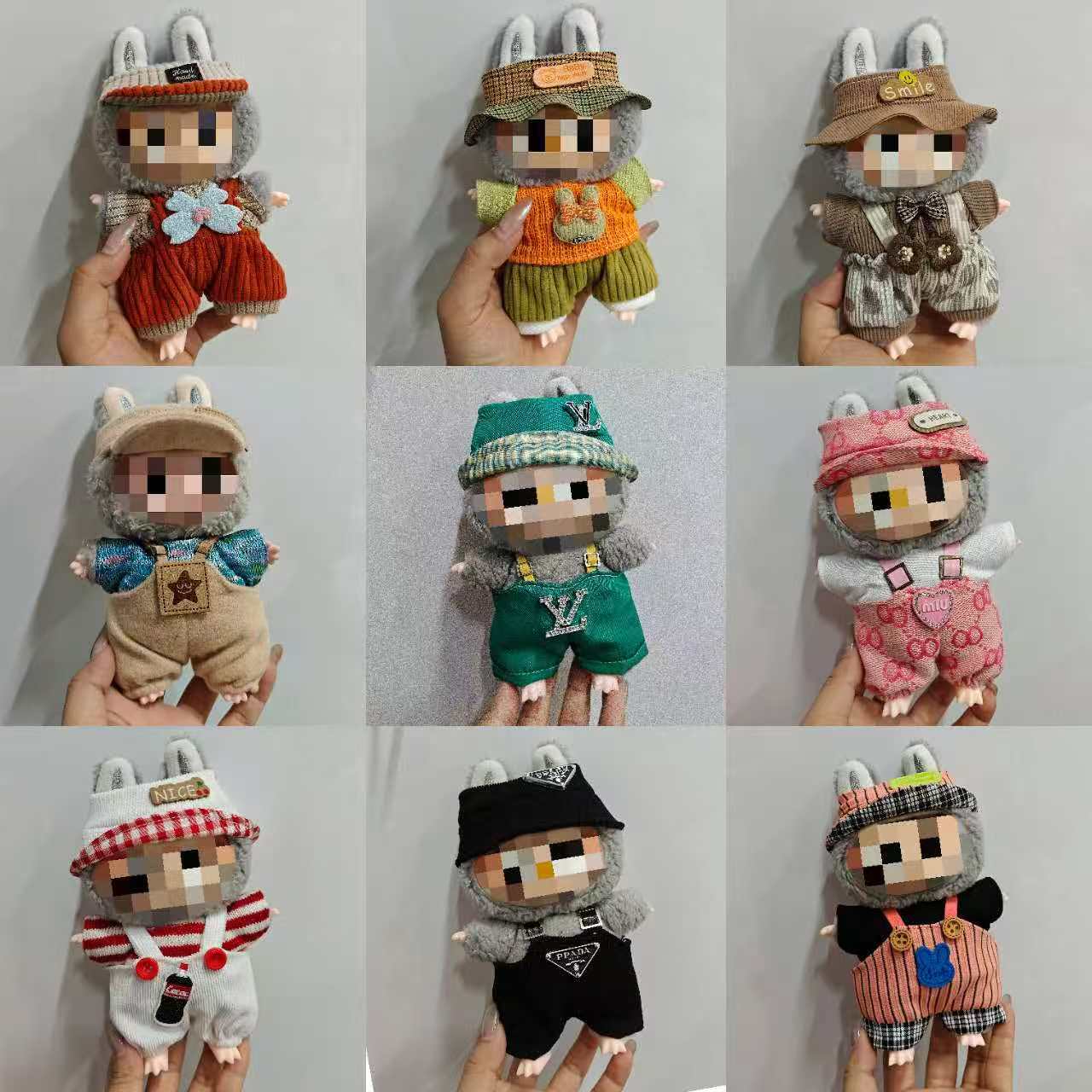 Pakaian Boneka Kain Labu Pakaian Set Topi Penggantian Lucu Berkaret Bulu Labubu17 cm Set Penggantian Generasi
