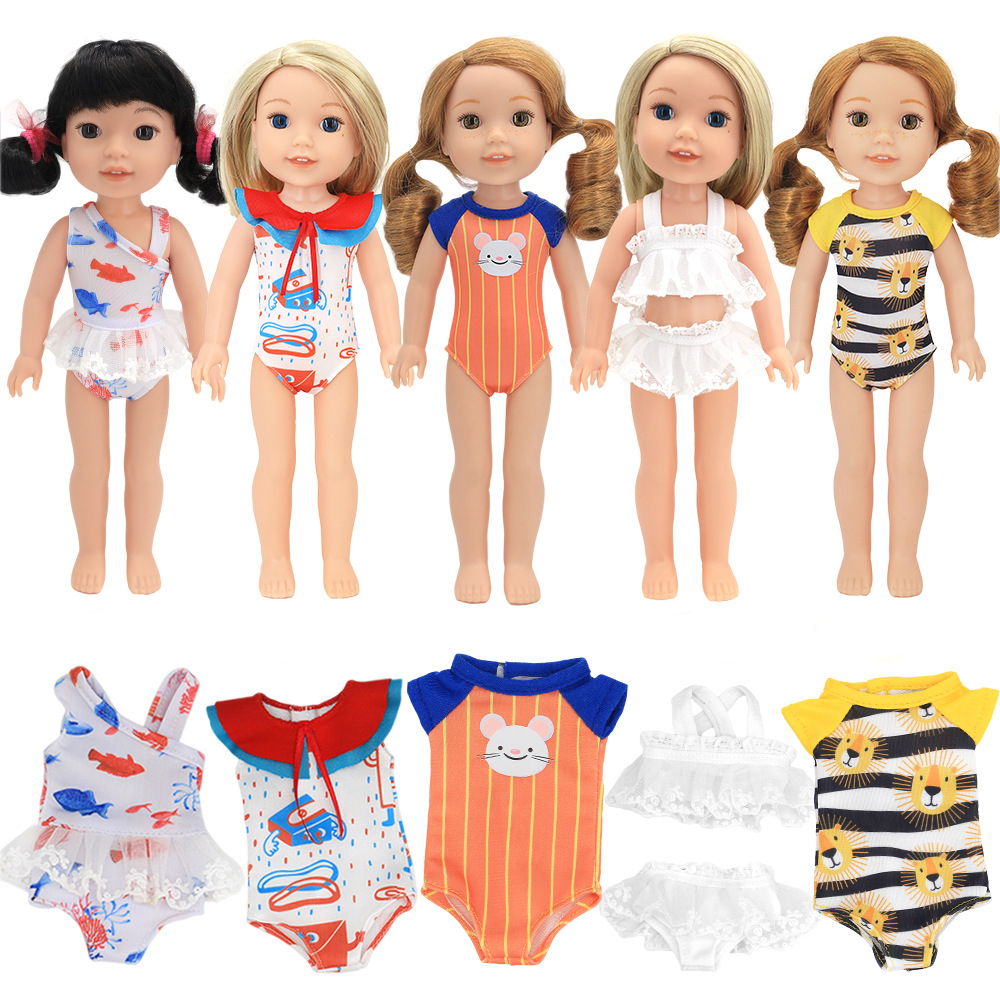 Pakaian boneka anak perempuan Amerika 14 inci Aksesori baju boneka pakaian renang satu potong kartun pasokan langsung lintas batas tersedia
