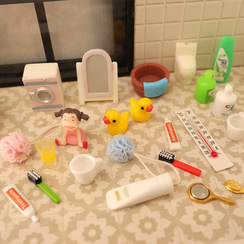 Bola Mandi Adegan Kamar Mandi Mini Rumah Boneka Lintas Batas Perlengkapan Mandi Bebek Kuning Kecil Perlengkapan Mandi Set Bak Mandi Aksesori Model
