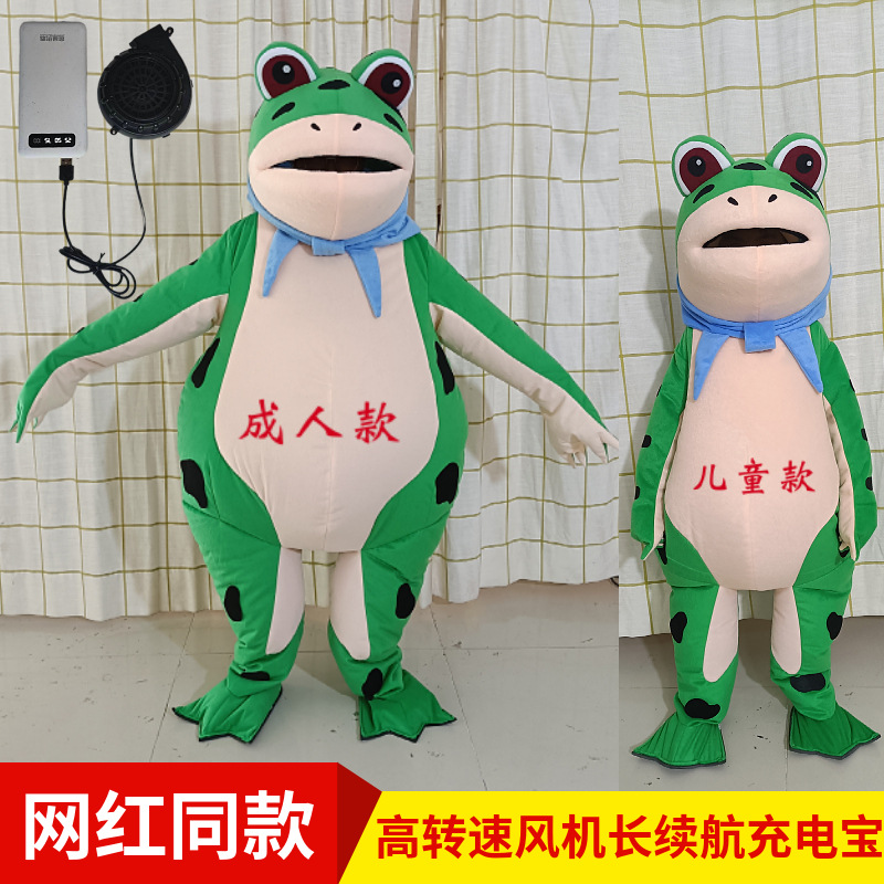 Online kostum boneka kodok merah berjalan pakaian boneka kartun kodok dapat ditiup properti penampilan lucu pakaian