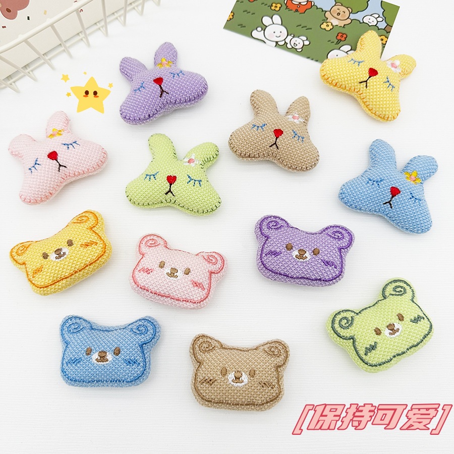 Aksesori bros diy boneka kelinci beruang bordir kartun kain baru tas anak perempuan Aksesori kaus kaki sepatu aksesori pakaian