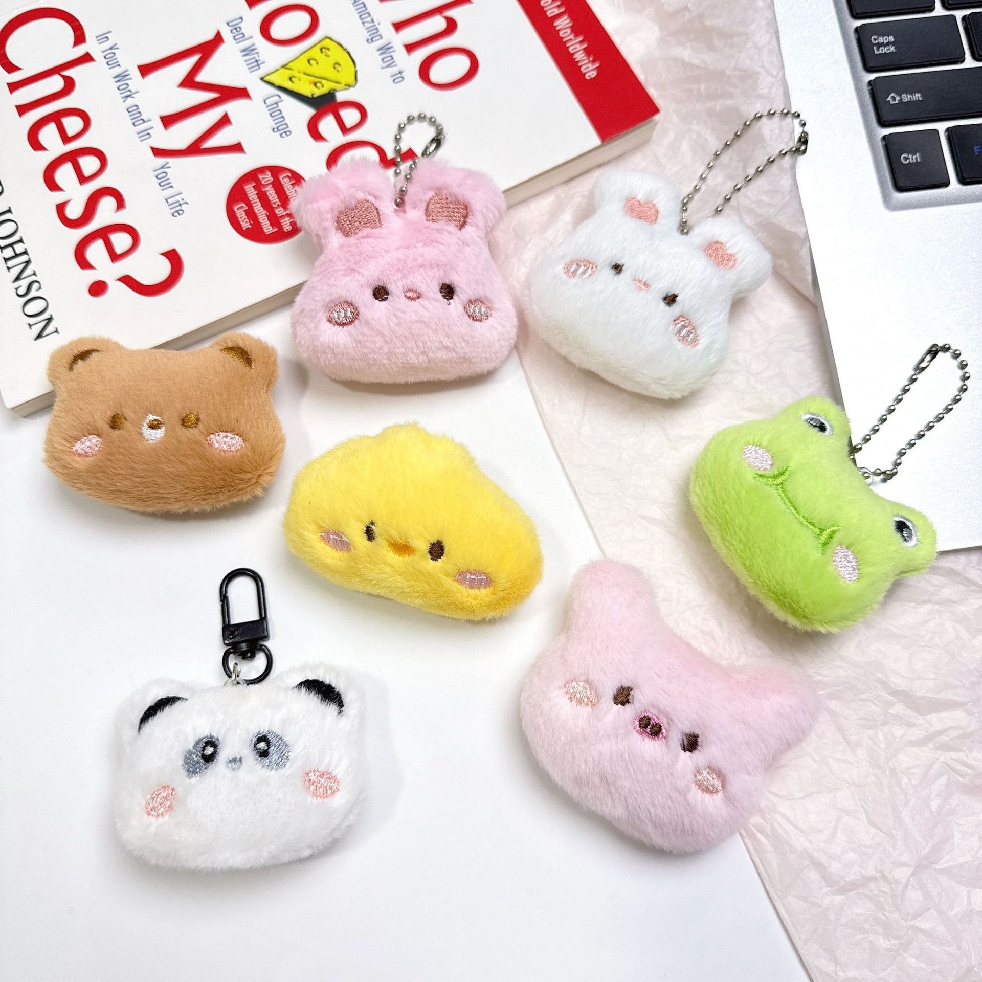 Bros boneka plush kartun tersedia, boneka beruang lucu, katak, kelinci gantungan tas, mainan hewan kecil DIY