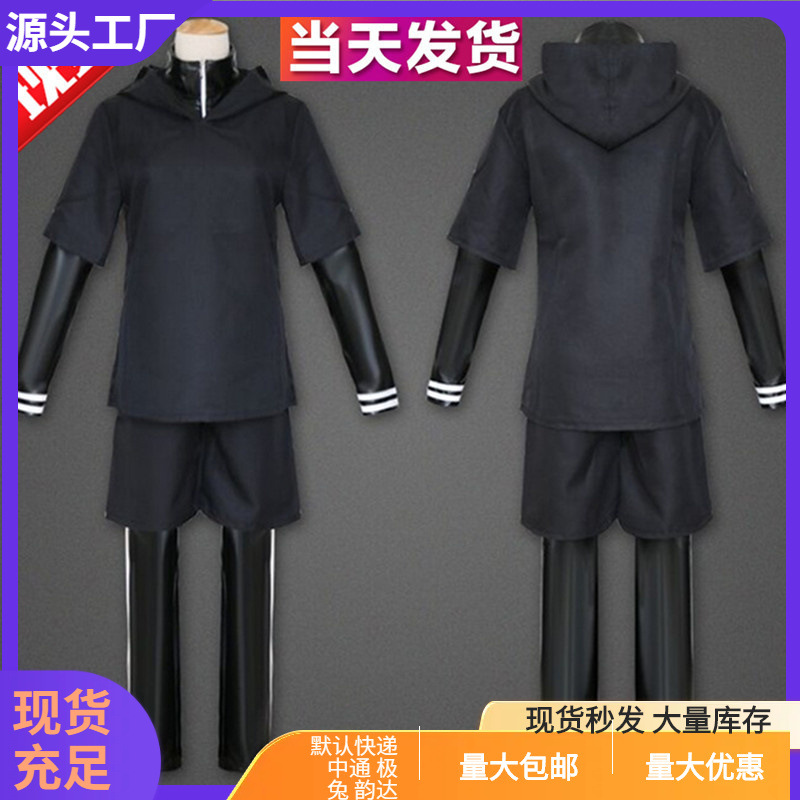 Tokyo ghouls sutra COS hitam emas kayu penelitian COS setelan tempur kulit peregangan 4 bagian set dalam stok rambut generasi