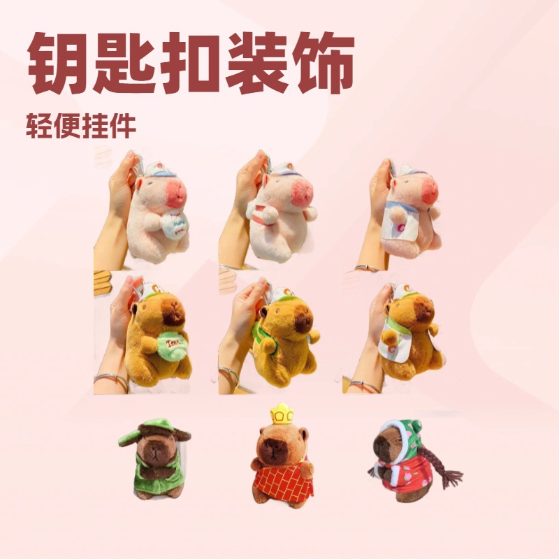 新款汉堡背包卡皮巴拉毛绒玩具汽车钥匙扣可爱水豚包包挂件小礼物
