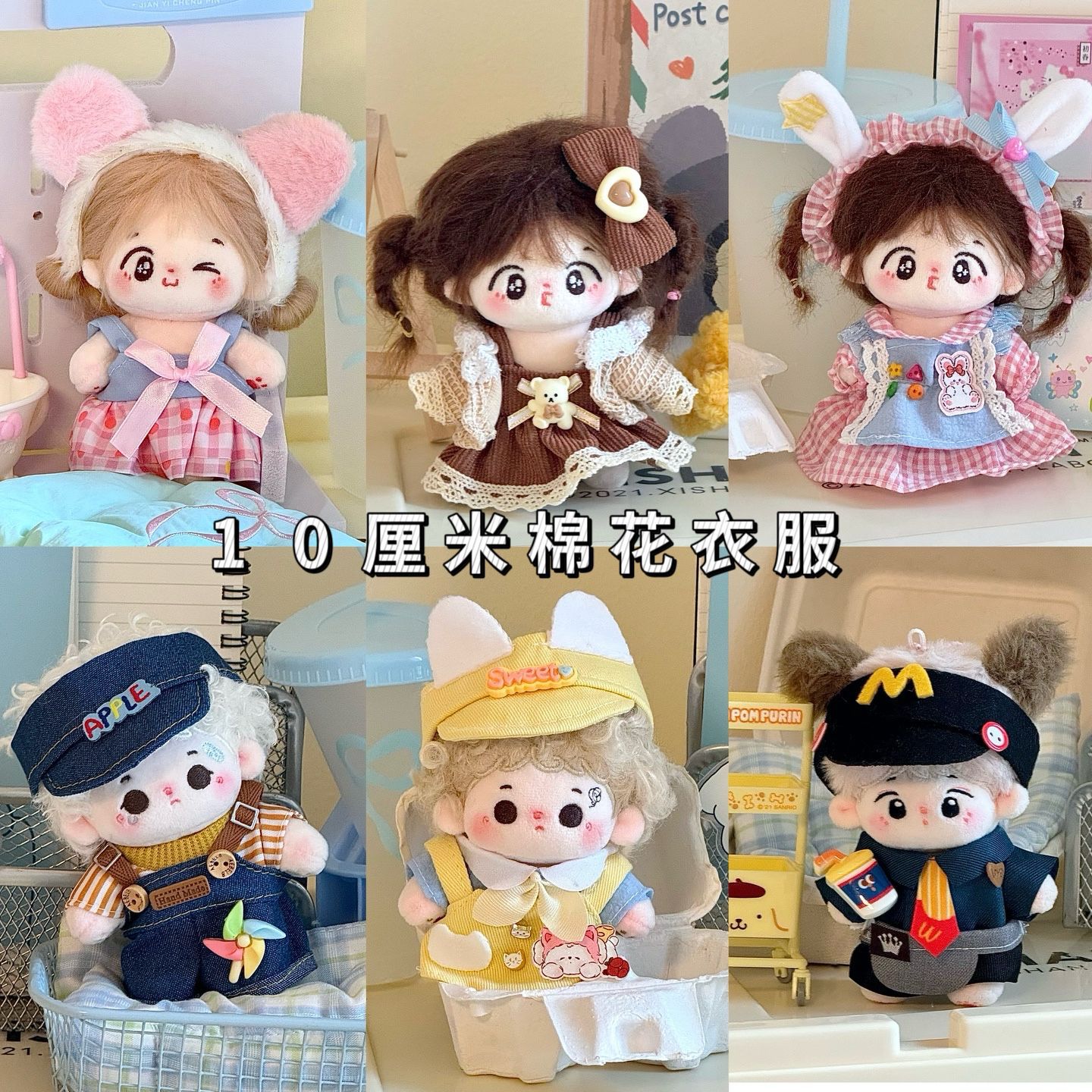 10cm厘米棉花娃娃可爱衣服背带裤套装裙子公仔毛绒玩偶换装无属性