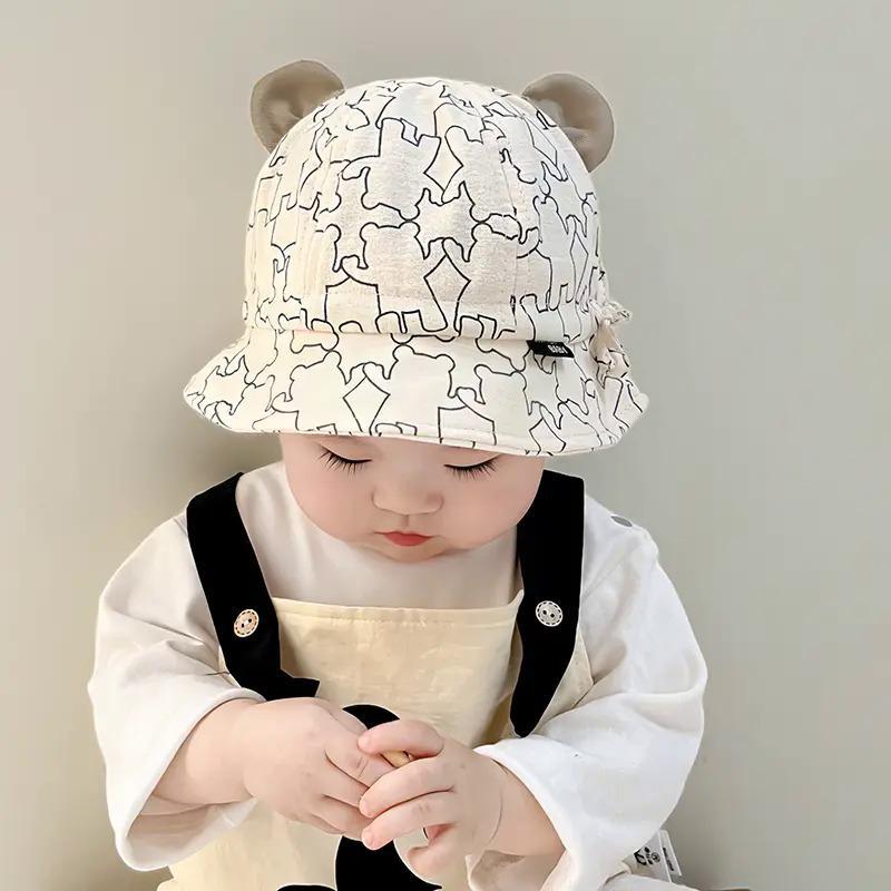 Topi bayi Musim Semi dan musim gugur gaya Korea baru topi anak-anak anak laki-laki dan perempuan topi nelayan bayi super lucu topi baskom tahan matahari bayi