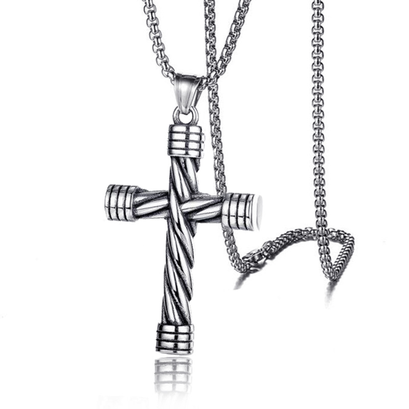 Amazon cross border perhiasan baja titanium sederhana memutar kalung salib retro hip hop pria dan wanita aksesori pakaian