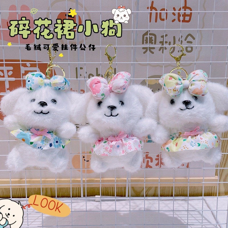 可爱碎花裙小狗挂件毛绒玩具公仔包包挂饰钥匙扣布娃娃玩偶小礼品